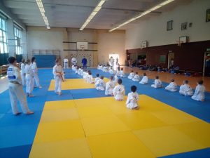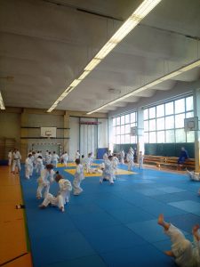 Im Anschluss stand die Fallschule auf dem Programm, gefolgt von der Wiederholung erster Techniken und wichtigen Grundlagen für den Wettkampf. So konnten die Kinder ihre Würfe und Festhaltetechniken noch einmal in Ruhe üben, bevor es zum Höhepunkt des Tages ging: dem Randori.