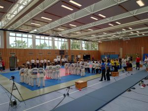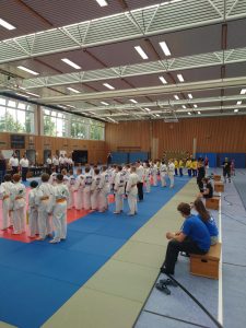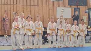 Im ersten Kampf gegen die Mädchen von Shido Sha kämpften unsere Mädchen tapfer, verloren aber leider mit 0:5. Im zweiten Kampf ging es um Silber oder Bronze gegen die Mädchen von Kaizen Berlin. Hier war es ein spannender und knapper Kampf, den wir leider mit 2:3 verloren. Trotz dieser beiden Niederlagen konnten die Mädels stolz auf ihre Leistung sein und freuten sich bei der Siegerehrung über den dritten Platz. Herzlichen Glückwunsch!