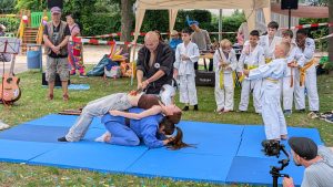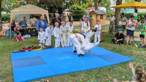 Ein besonderes Highlight: Die beeindruckende Judo-Show unserer Judokas unter der Leitung von Trainer Carsten Fischer. Die Kinder zeigten, was sie gerade gelernt haben – von Judowürfen uns Selbstverteidigungstechniken bis hin zu spannenden Einblicken in den Waffen – und Stockkampf.