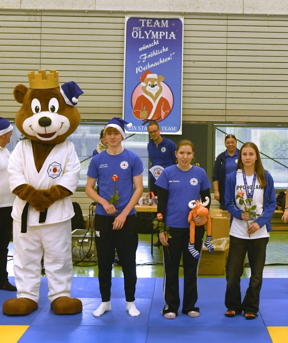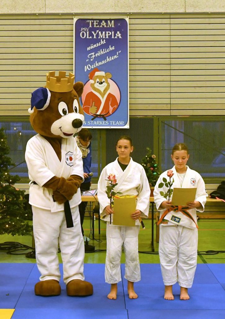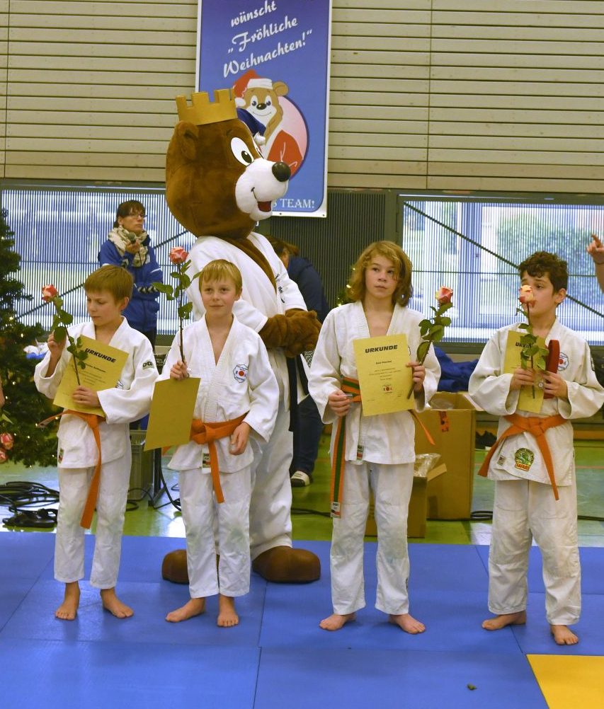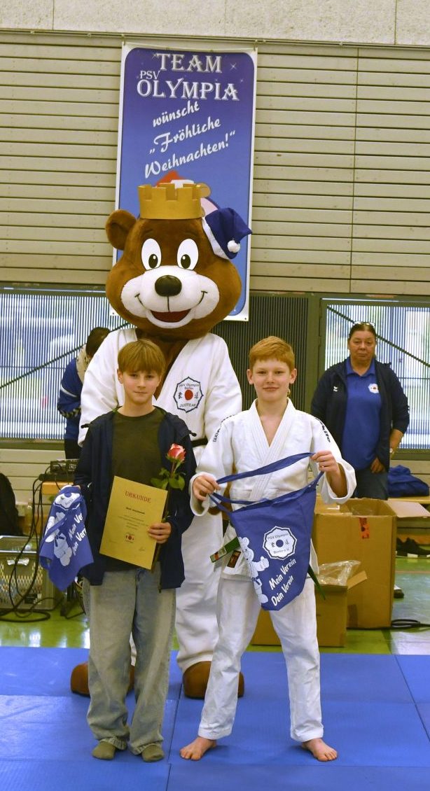 Die Kinder traten in Mannschaften gegeneinander an und wurden von den Zuschauerinnen lautstark angefeuert – die Begeisterung war förmlich spürbar! Nach vielen spannenden und fairen Kämpfen wurden alle Teilnehmenden für ihren Einsatz belohnt: Jeder erhielt eine Vereinstrinkflasche und einen Schokoladen-Weihnachtsmann als Erinnerung an diesen wunderbaren Tag.