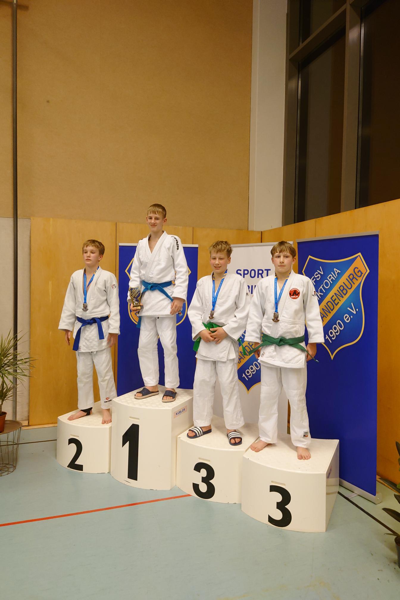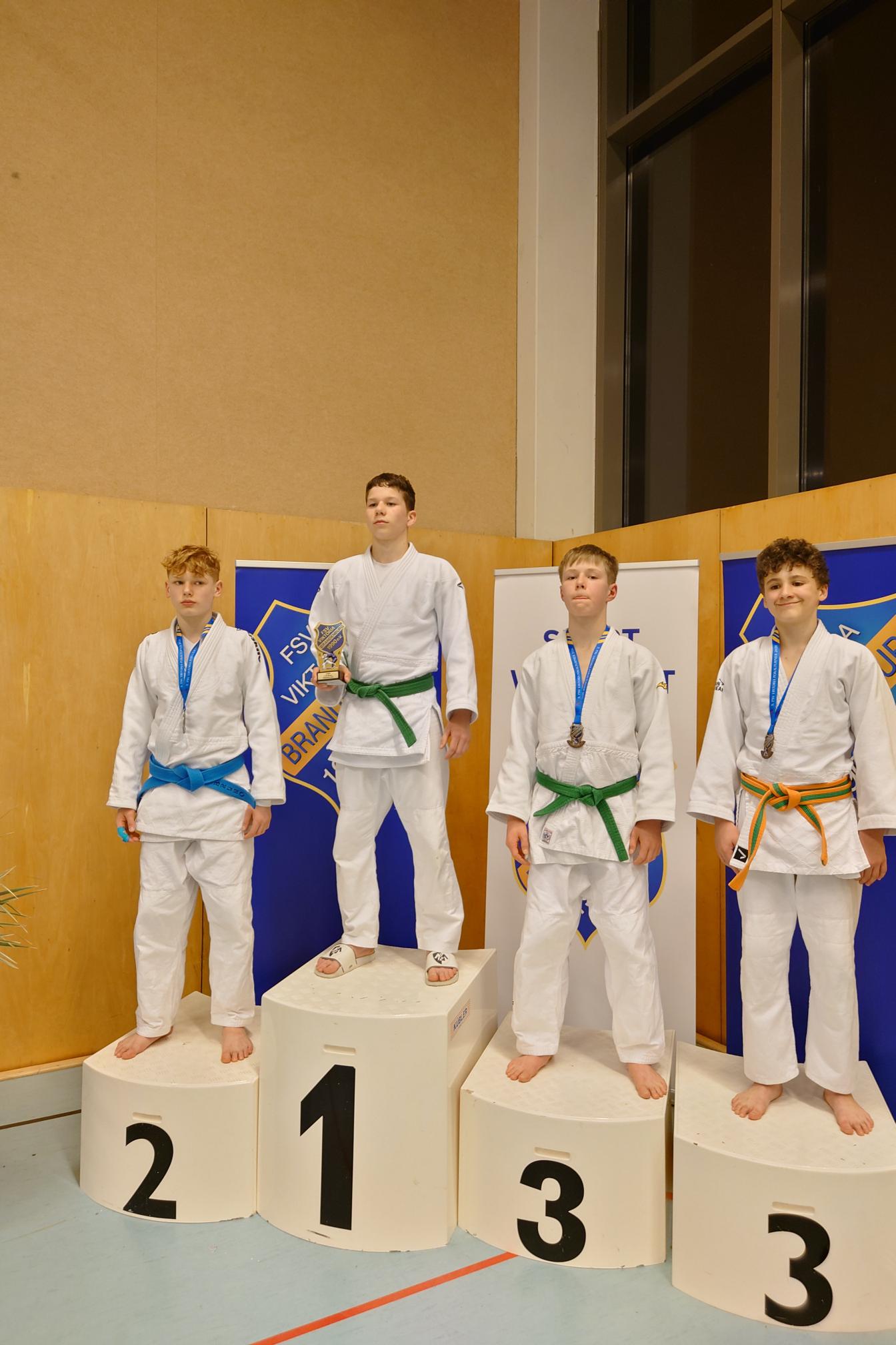 In der U15, deren Wettkämpfe erst verspätet um 17:30 Uhr begannen, bewiesen unsere Judoka ebenfalls großen Einsatz. Bruno H. sicherte sich die Silbermedaille. Ebenfalls starke Leistungen zeigten Felix G., Kirill K. und Miko N., die sich jeweils eine Medaille erkämpften.